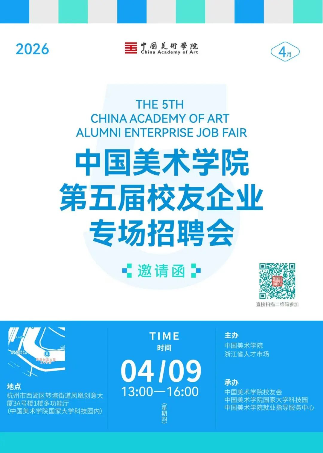 3、参会用人单位代表请直接到中国美术学院国家大学科技园3A号楼1楼多功能厅报到(4月9日12:30前)(因突发情况不能准时参会的单位,请于招聘会开始前通知会务组取消展位,否则将取消今后来校招聘资格)。
